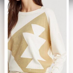 Ralph Lauren Beige Southwestern Print Terry Pullover Crewneck Sweater Medium