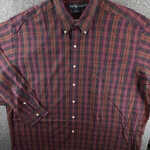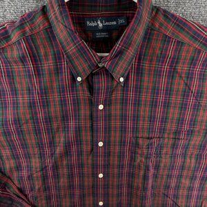 Ralph Lauren Big Shirt Plaid Colorful Red XL Oxford Heavyweight Button Up Shirt