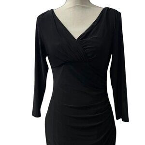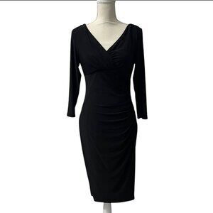 Ralph Lauren Black 3/4 Sleeve Faux Wrap Sheath Dress Size 6