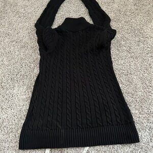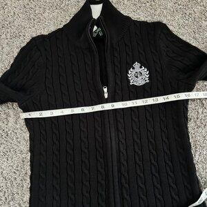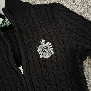 Ralph Lauren Black Cable Knit Full Zip Sweater Jacket RL Crest Logo vintage M