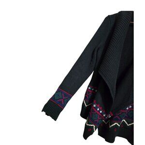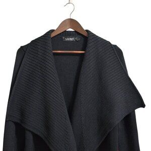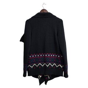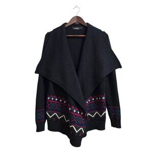 Ralph Lauren Black Fair Isle Shawl Collar Open Front Wool Blend Cardigan Sz L