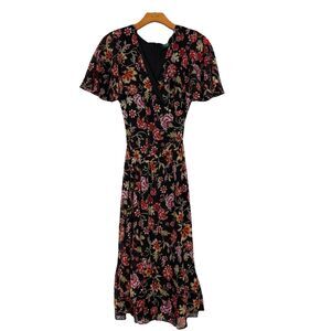 Ralph Lauren Black Floral Georgette Dress Short Flutter Sleeve Faux Wrap SZ 0 NW