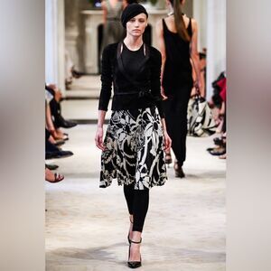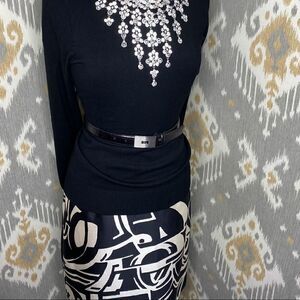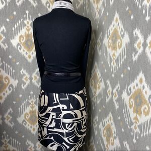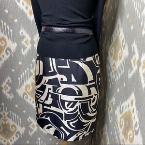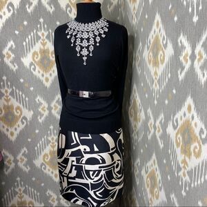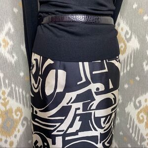 Ralph Lauren Black & Ivory Art Deco Abstract Auto Pattern Silk Pencil Skirt