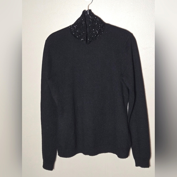 Ralph Lauren Black Label 100% Cashmere Embellished Luxury Glam Sweater, Large