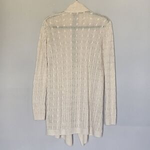 Ralph Lauren Black Label Long Sleeve 100% Linen Cable Knit Cardigan Sweater in wonderful condition. Non smoking, no pet home. No size tag, but measures to an approximate size M. However please see the below approx measurements for fit.