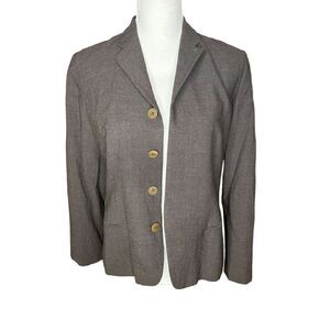 Ralph Lauren Black Label 100% Wool Brown Hidden Button Blazer Jacket Women Sz 8