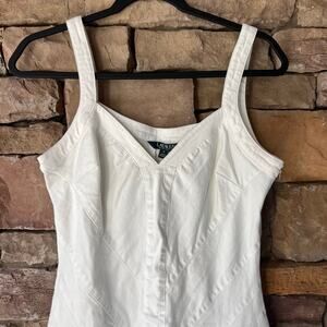 Ralph Lauren Black Label 8 Cotton White Denim Fit & Flare Boho Sleeveless Dress