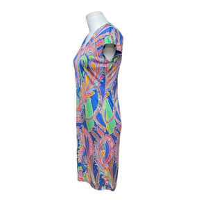 Ralph Lauren Black Label Blue Multicolor Paisley Silk Jersey Sheath Dress Size 4
