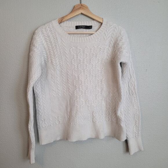 Ralph Lauren Black Label Cable Knit Sweater Wool Blend Womens L White Warm
