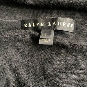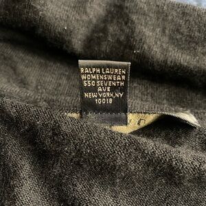 Ralph Lauren black label black cashmere sweater. The sweater can be worn on or off the shoulder. It has a crossover twist front. It’s marked size large but fits more like a medium so that’s how I’m listing it. Please see measurements. This sweater is in very good preowned condition. There are a few light marks on the front that look like they might be from deodorant, so it could use a cleaning.