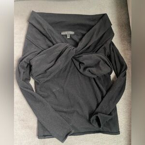 Ralph Lauren Black Label Cashmere Off Shoulder Crossover Front Black Sweater