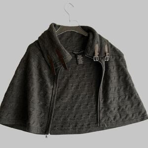 Ralph Lauren Black Label Charcoal Cashmere Capelet Leather Accent Luxury Recency