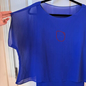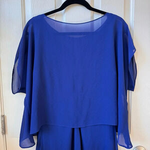 Ralph Lauren Black Label Chiffon Cape-Overlay mesh Jersey Dress sz 12 Large blue