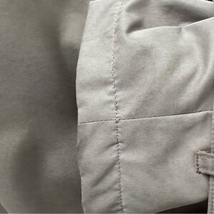 This is a fantastic Rl Black Label belted trench coat! Double breasted, side pockets, belted waist and cuffs. Wool lining includes long sleeves for extra warmth and easily zips out. The coat has an additional lining when the soft coat is removed. Please note a very slight discoloration beneath the front flap, which isn’t visible when not buttoned to the neck. Another light mark n one of the cuffs as pictured.