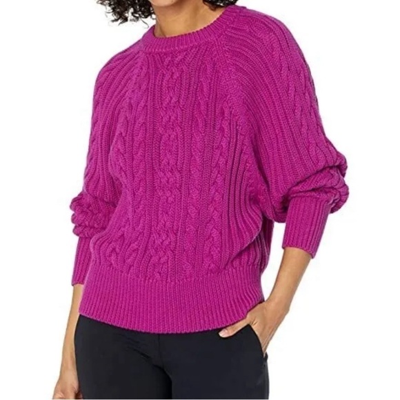 Ralph Lauren Black Label Fuchsia 100% cotton Cable Knit Sweater Sz SP