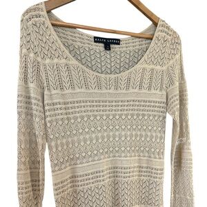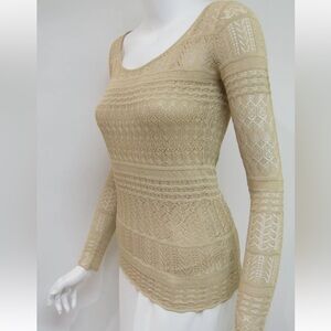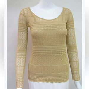 Like new! Ralph Lauren Black Label Silky Crochet Knit Viscose Top in Tan