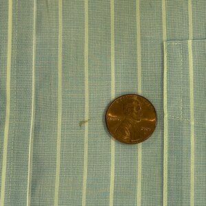 This is one beautiful shirt with very little wear, but it does have 2 imperfections as is detailed in the many photos. One really has to look close to see these two marks on the front of the shirt.....see how minute they are in comparison to the pennies. The marks may be removeable w/Shout or other stain removers....IDK. The shirt is priced with the imperfections in mind. This designer shirt will be a steal for someone!! Why not wear a Ralph Lauren Black Label designer shirt for the same price as a non-designer shirt?? My loss is your gain!