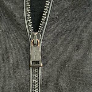 Only flaw on this gorgeous sweater is very slight unnoticeable wear to the finish on the small zipper hardware. Otherwise in perfect condition. Runs true to size. Gorgeous sweater.