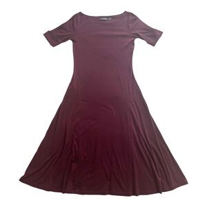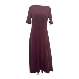 Ralph Lauren Black Label very high-quality dress size SP. 92% cotton/8% elastane blend makes this dress very, very comfortable, springy and flowy. Excellent preowned condition with no holes, flaws or stains. Beautiful eggplant color. Sort of a fit and flare midi. Looks great with boots, sneakers or sandals. Measurements in photos with a little stretch to be weighed in. Smoke-free home 🏠 All photos taken on a surface and not the floor.