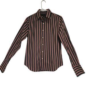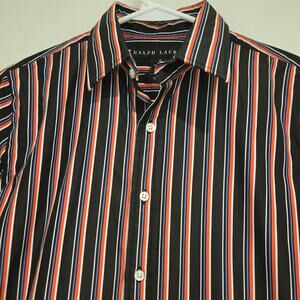 Ralph Lauren Black Label Preppy Button-Down Striped Cotton Long-Sleeve Shirt- 6