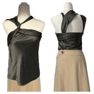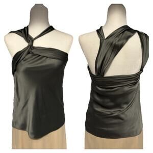 Ralph Lauren Black Label Silk Blouse One Shoulder Satin Top Halter Twist Tank 8