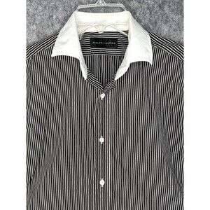 Ralph Lauren Black Label Size 15 Black Striped Dress Shirt Men's Cotton Italy