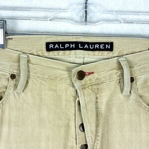 Ralph Lauren Black Label Straight Jeans Mens 34x34 (36x34) Tan Button Fly Preppy Classic Old Money