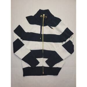 Ralph Lauren Black Label Sweater Women's SZ XL Black & White Stripes Full Zip