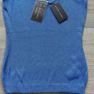 Ralph Lauren Black Label Top Women Small Blue Silk Cold Shoulder