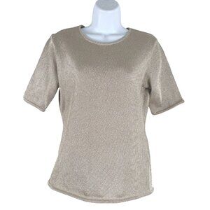 Ralph Lauren Black Label Top Womens Large Silk Blend Metallic Gold TP-3273