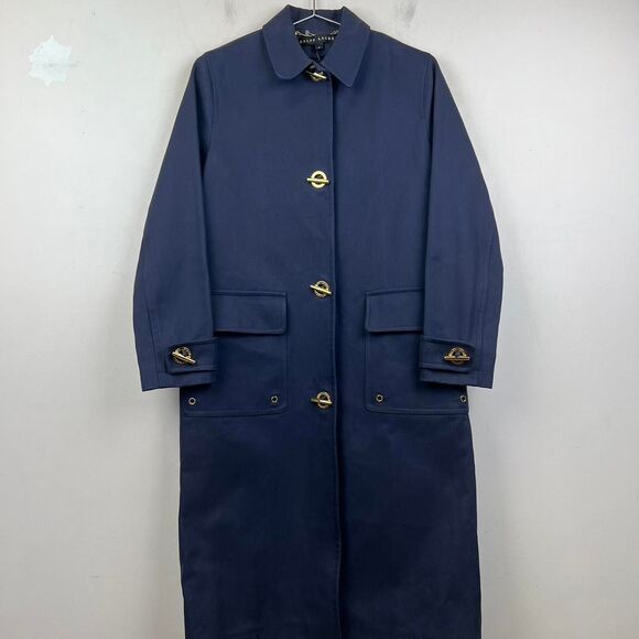 Ralph Lauren Black Label Womans Pea Coat Blue Cotton Solid Long Pockets Size 6