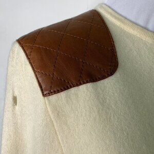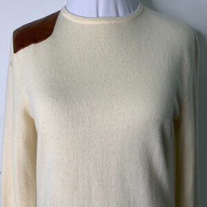 Ralph Lauren Black Label Women's Cream Leather Cashmere Sweater Size Medium