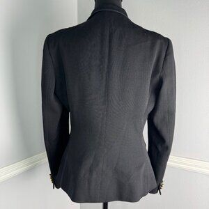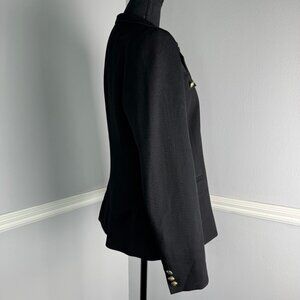 The Ralph Lauren Black Label Wool Military Blazer in size 12 is a stylish and versatile jacket made from quality wool. With a stand collar and button closure, it's perfect for everything from parties to casual outings to work meetings.