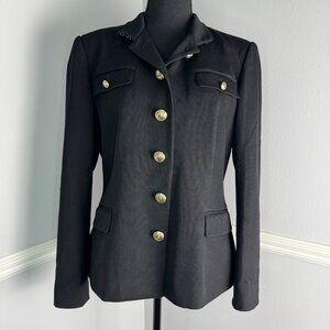 Ralph Lauren Black Label Wool Stand Collar Military Style Black Jacket Blazer 12