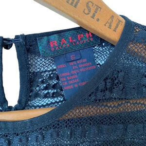Ralph Lauren Black Lace Overlay Dress Small Shift Keyhole Back Cocktail LBD
