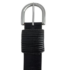 Ralph Lauren Black Leather Belt Southwestern Western Silver Buckle Adjustable