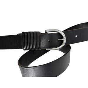 Ralph Lauren Black Leather Belt Western Silver Buckle Adjustable Large