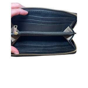 This wallet is in beautiful condition. Interior is very clean, like new. There are some scratches to the gold metal, on the plate and zipper pull. See photos. Ready to elevate your everyday style with a preppy and classic piece? Don't miss out on this must-have accessory!