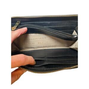 Ralph Lauren Black Leather & Gold Plate Full Zipper Women's Card Wallet