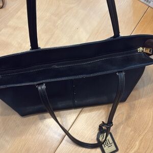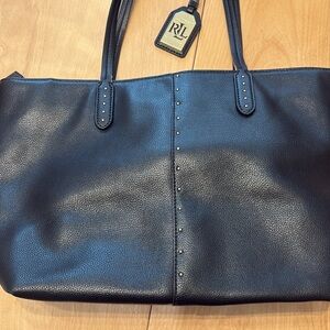 Ralph Lauren Black Leather with Gold Hardware Tote Bag