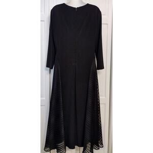 Ralph Lauren Black Long Dress Women Black Fit Flare Lace Insets 3/4 Sleeves 12 L