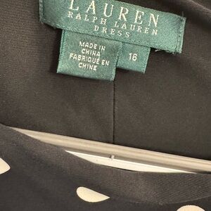 Chic Ralph Lauren midi dress. Black with white polka dots. Perfect for any occasion.