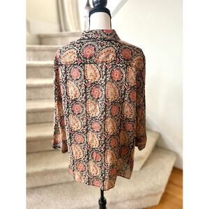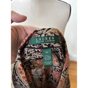 Ralph Lauren Black Orange Paisley Block Print Cotton Ruffle Button Down