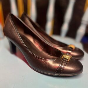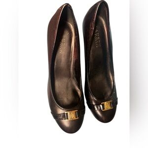 Ralph Lauren Black Patent Leather Pumps with Gold Hardware Buckle Women’s Size 9