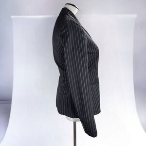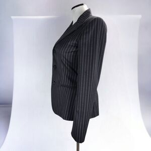 Ralph Lauren Black Pinstripe Blazer Size 4 Wool Peak Lapel Italy 3 Button Jacket