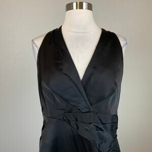 Ralph Lauren Black Satin Evening Gown Size 4 Pleated Long Column Formal Dress