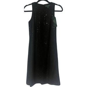 Ralph Lauren Black Sequined Shimmer Sleeveless Shift Dress Size 2 NWT $…