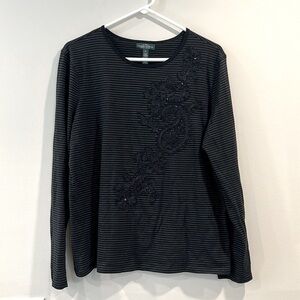 🔥Ralph Lauren Black Striped Top with Floral Embroidery🔥