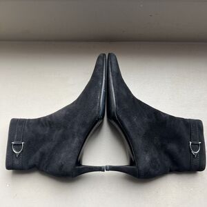 Ralph Lauren Black Suede Leather Ankle Boots Side Zip & Buckle Women’s Size 9 B