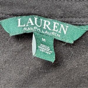 Elegant black swim coverup by Ralph Lauren. Features lace-up neckline. Perfect for beach or poolside.